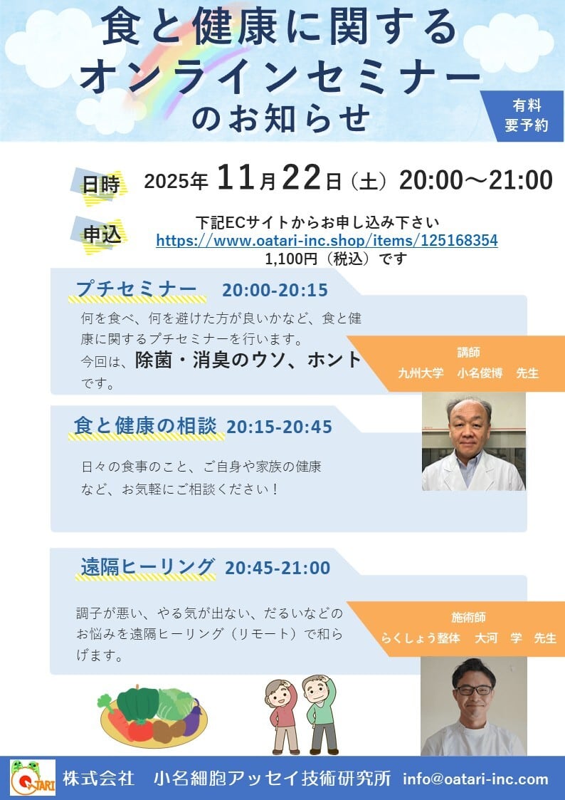 食と健康に関するオンラインセミナー 2025.11.22 【 食と健康に関するオンラインセミナー チラシ 2025.11.22 EC用 URL.jpg 】
