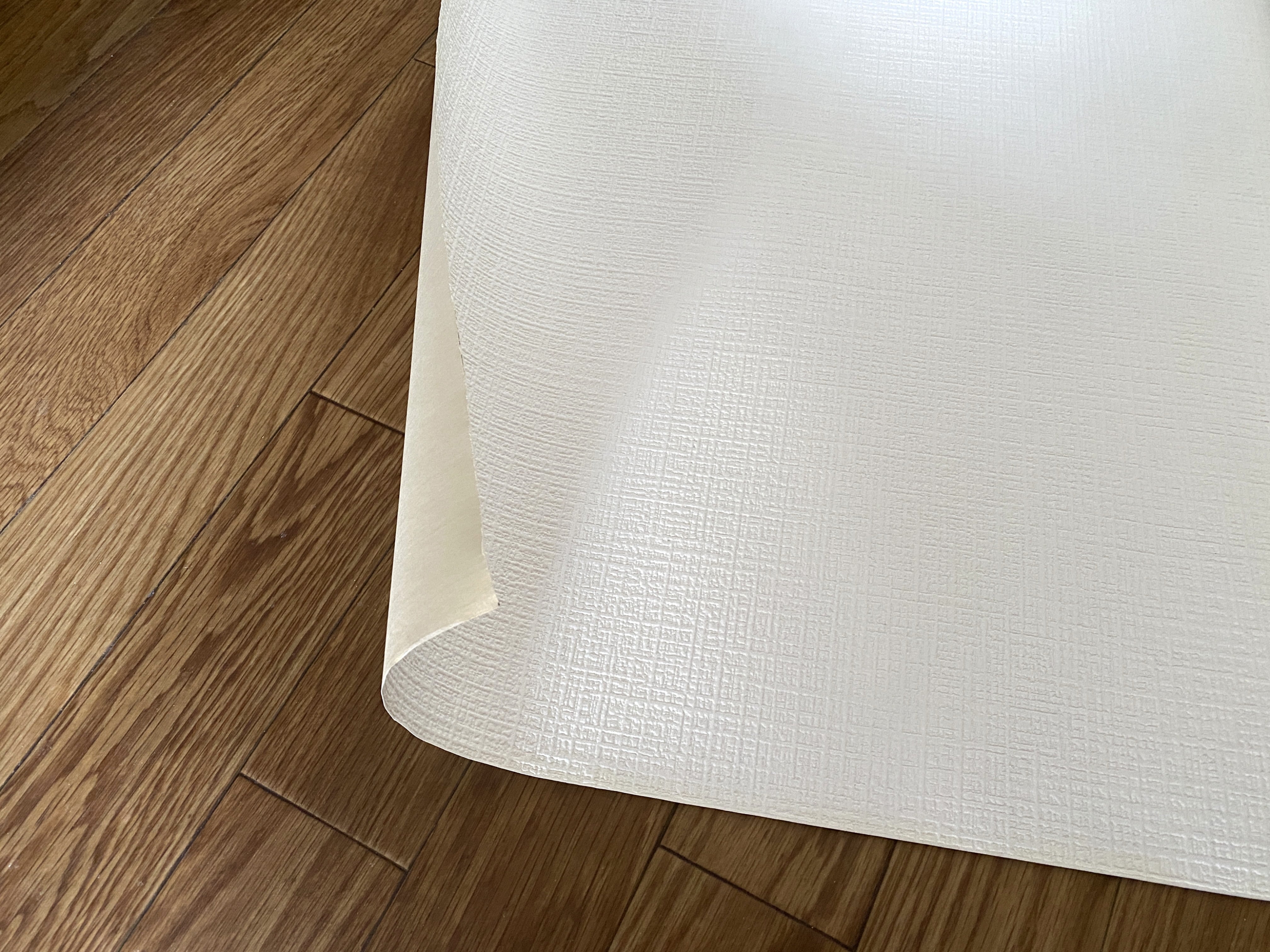 壁紙は、織物調と石目調の2種類です。幅90cmで、1m単位での販売です。裏に接着剤は付いておりませんので、ご自身でご用意願えれば幸いです。